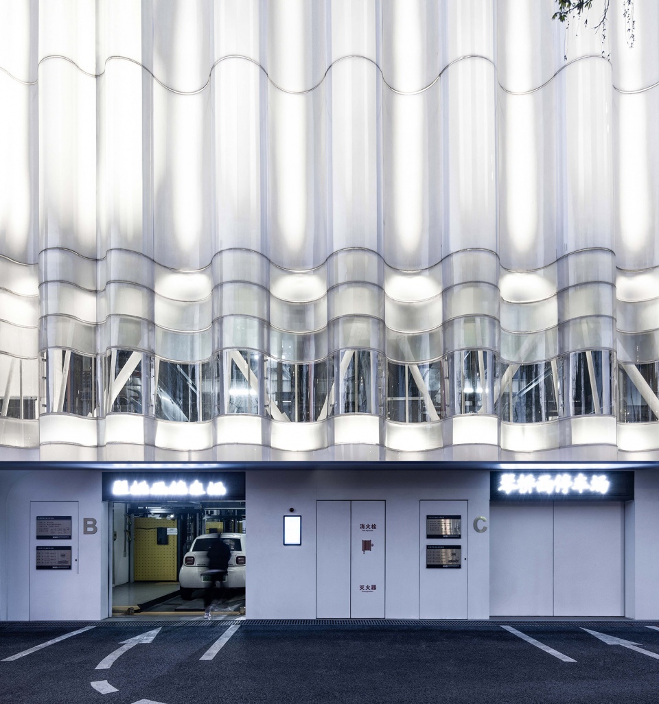 常见的停车楼往往以实体或是裸露的机械形态出现,更像是城市中被动的构筑物,甚至给人以消极的刻板印象。